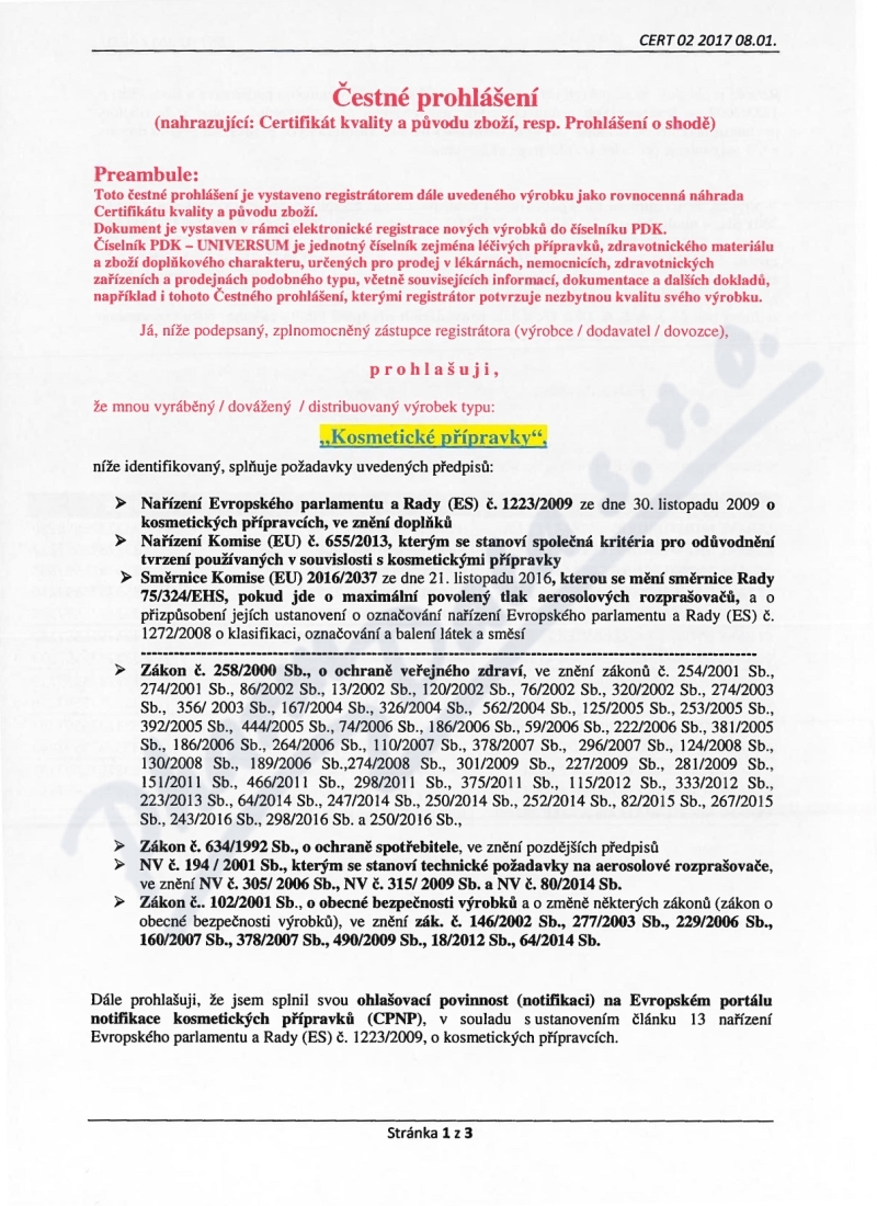 3 strany čestného prohlášení: strana 1, strana 2, strana 3,