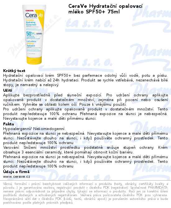 CeraVe Hydratační opalovací mléko SPF50+ 75ml