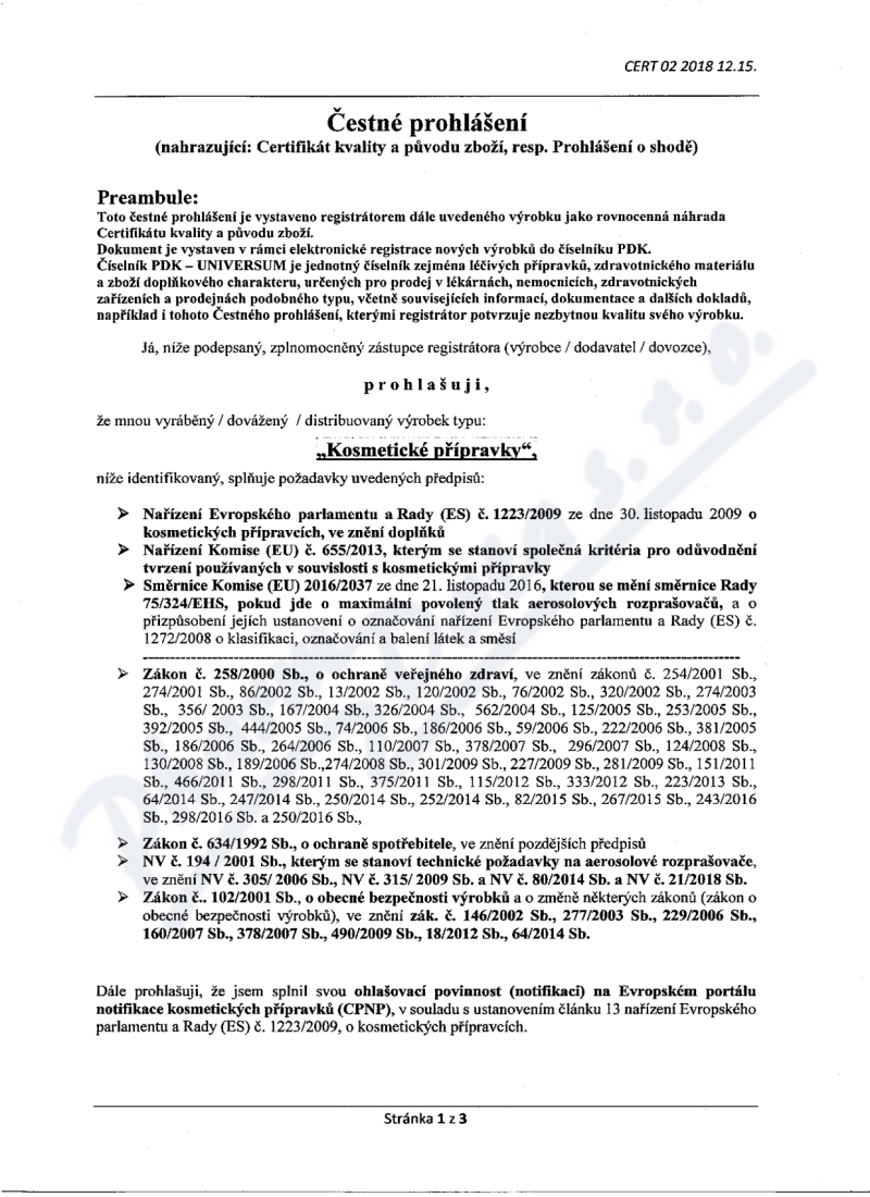 3 strany čestného prohlášení: strana 1, strana 2, strana 3,