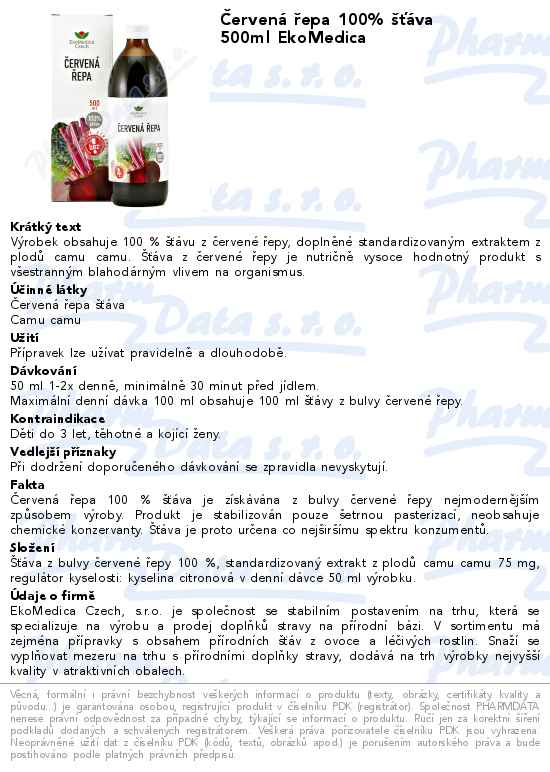 Červená řepa 100% šťáva 500ml EkoMedica