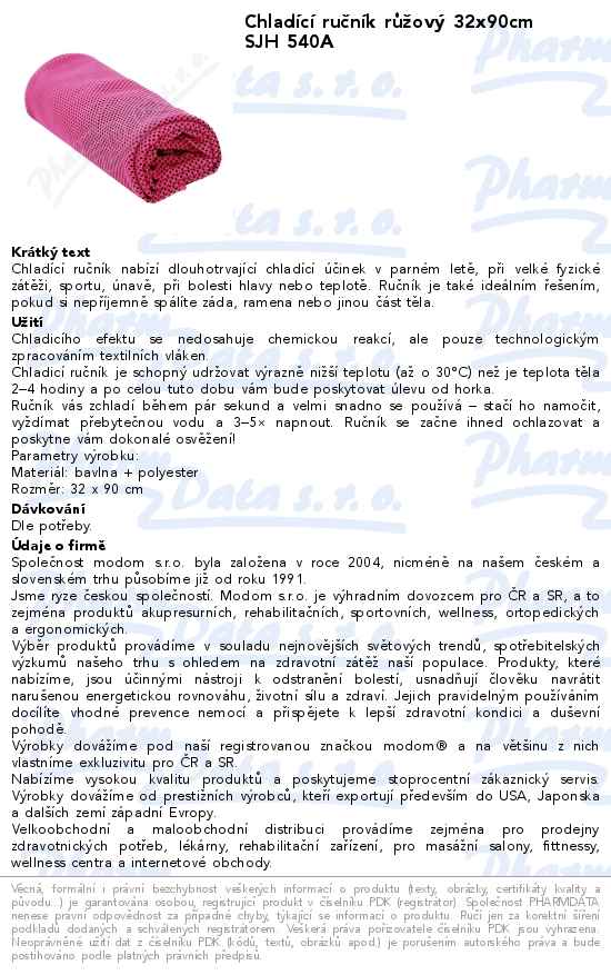Chladící ručník růžový 32x90cm SJH 540A