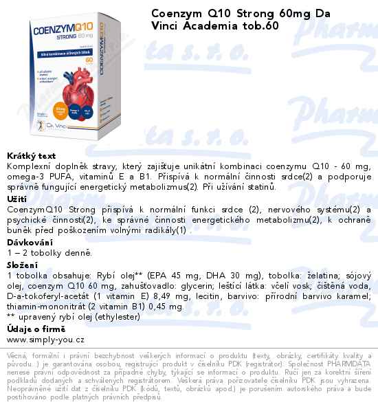 Coenzym Q10 Strong 60mg Da Vinci Academia tob.60