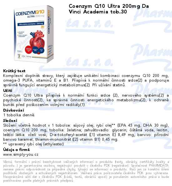 Coenzym Q10 Ultra 200mg Da Vinci Academia tob.30