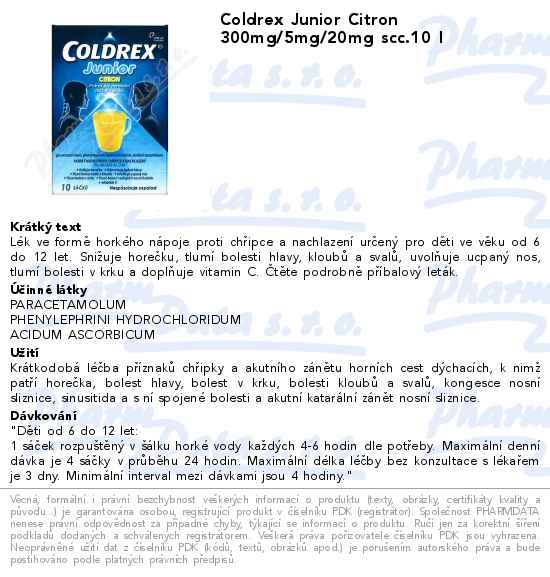 Coldrex Junior Citron 300mg/5mg/20mg scc.10 I