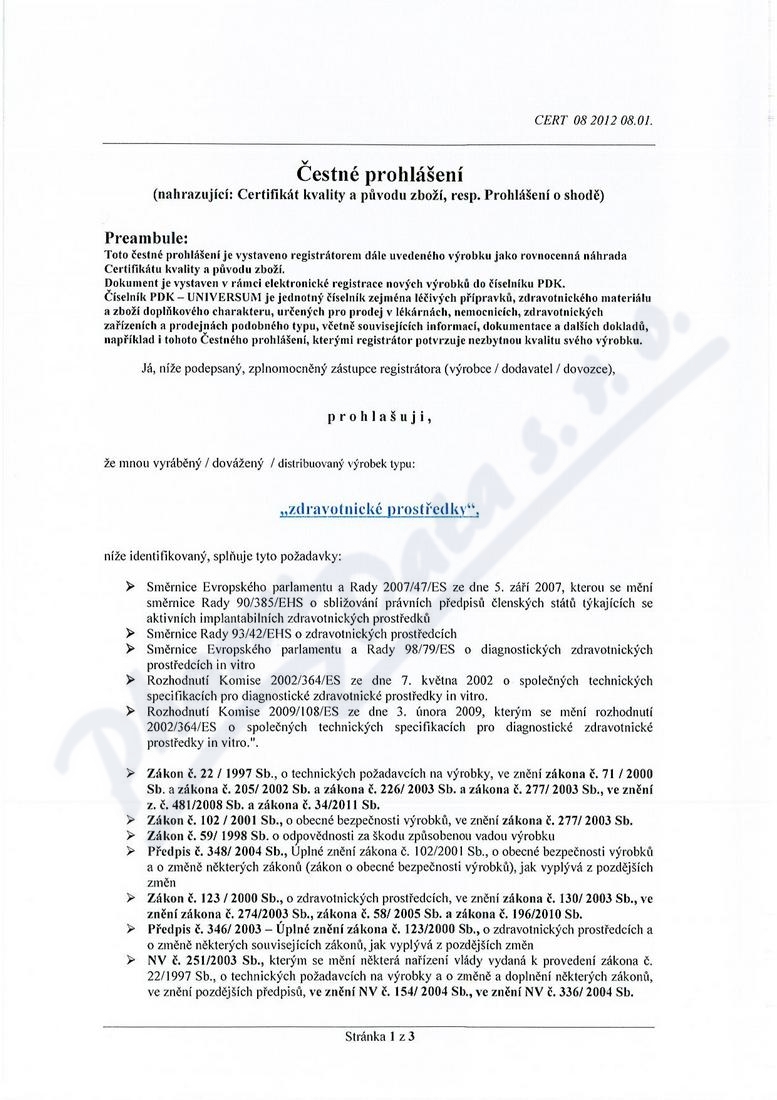 3 strany čestného prohlášení: strana 1, strana 2, strana 3,