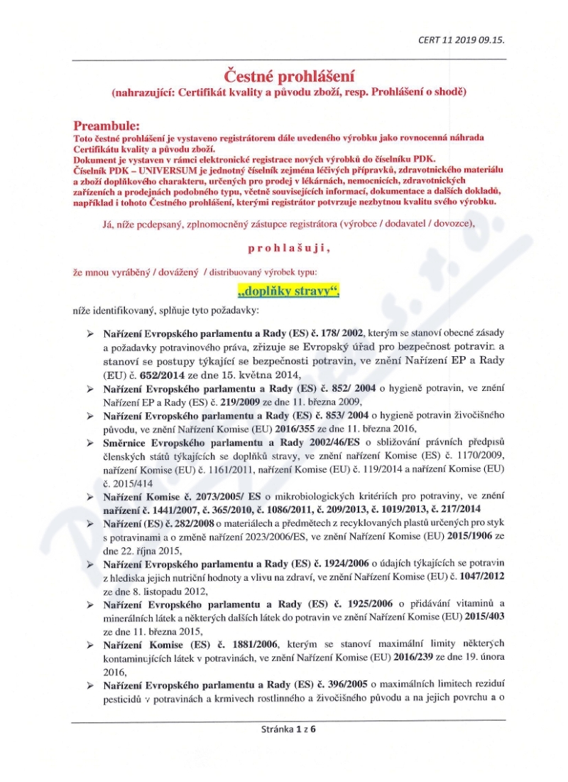 6 strany čestného prohlášení: strana 1, strana 2, strana 3, strana 4, strana 5, strana 6,