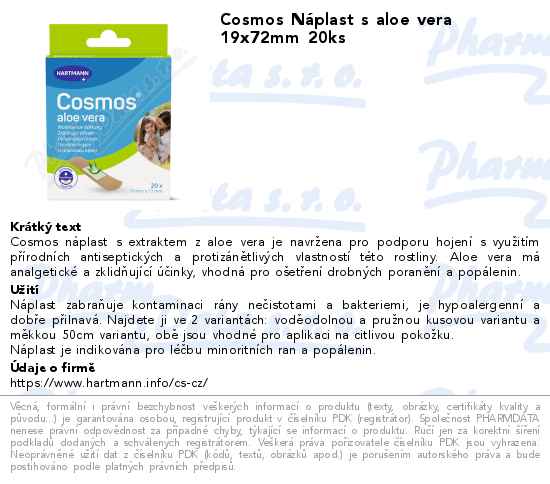 Cosmos Náplast s aloe vera 19x72mm 20ks