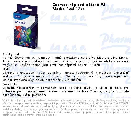 Cosmos náplasti dětské PJ Masks 3vel.12ks