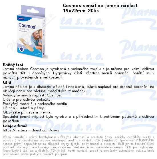 Cosmos sensitive jemná náplast 19x72mm 20ks