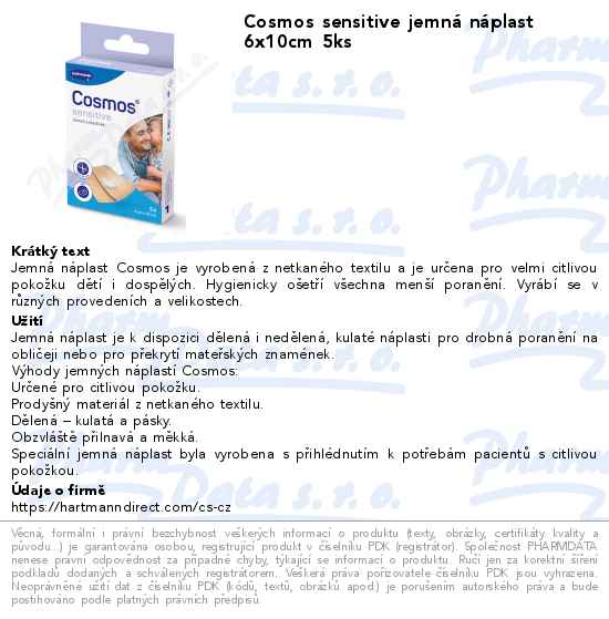 Cosmos sensitive jemná náplast 6x10cm 5ks