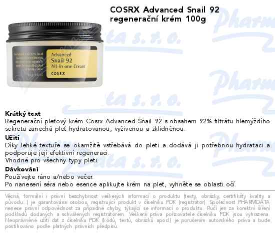 COSRX Advanced Snail 92 regenerační krém 100g