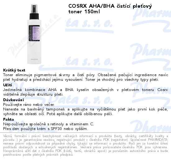 COSRX AHA/BHA čistící pleťový toner 150ml