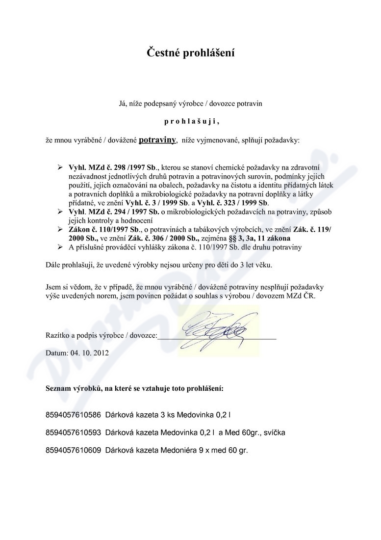 čestné prohlášení