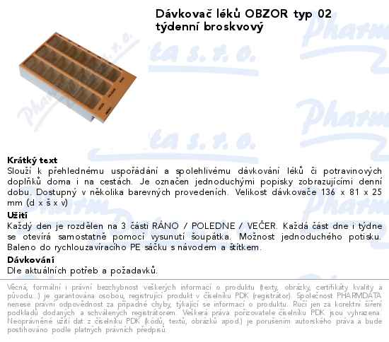 Dávkovač léků OBZOR typ 02 týdenní broskvový
