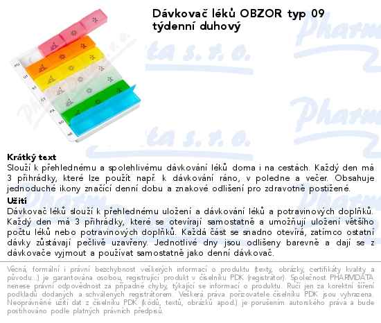 Dávkovač léků OBZOR typ 09 týdenní duhový