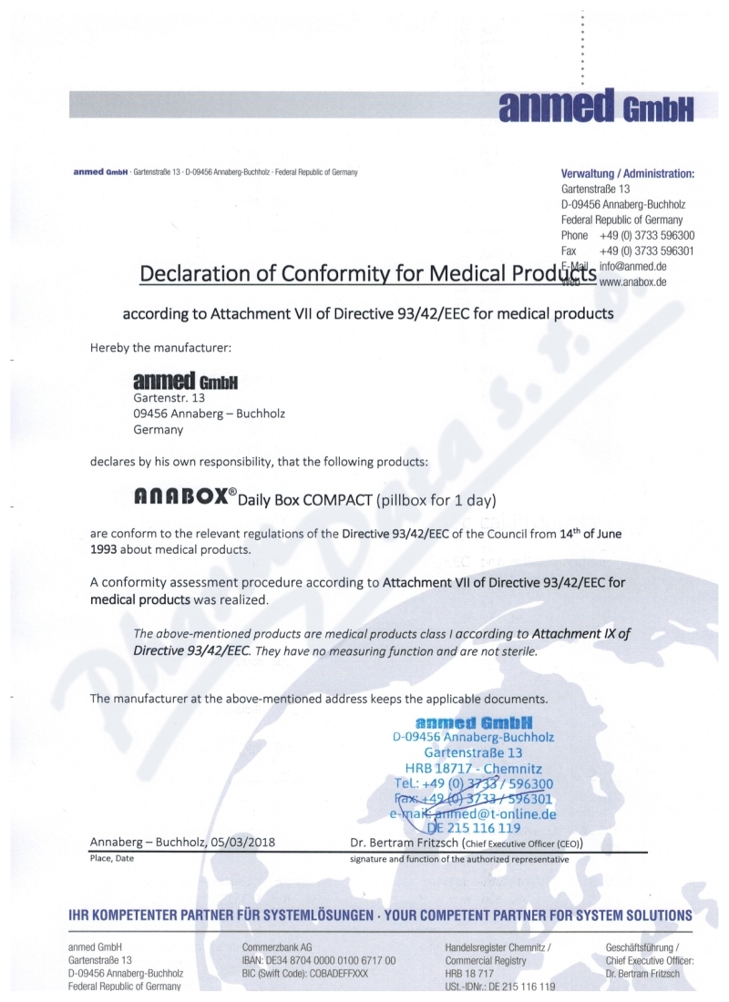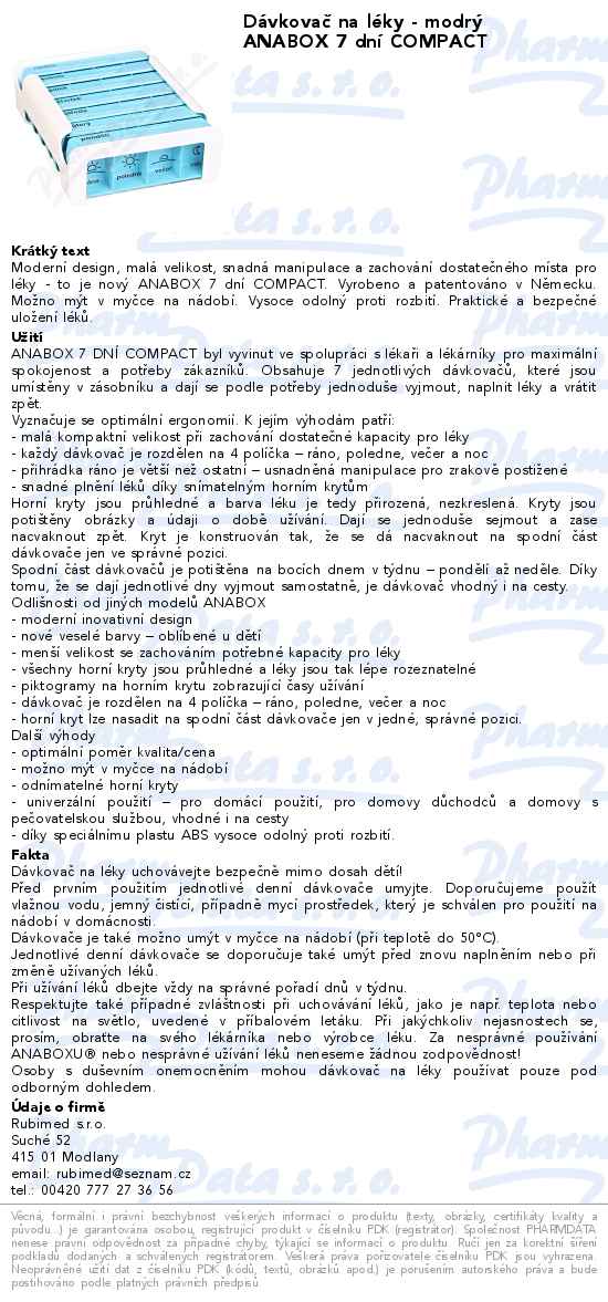 Dávkovač na léky - modrý ANABOX 7 dní COMPACT