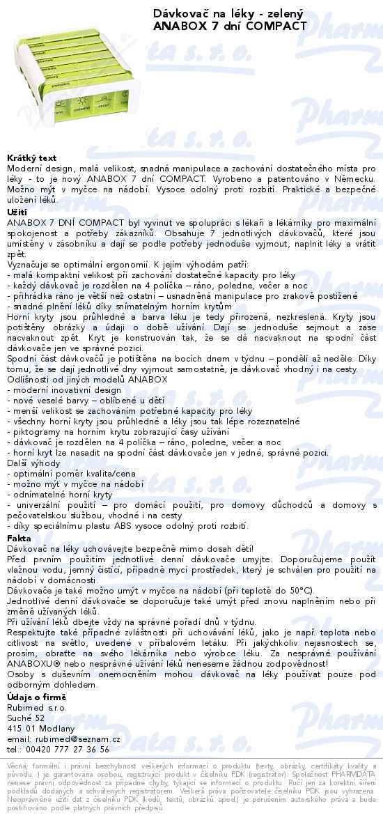 Dávkovač na léky - zelený ANABOX 7 dní COMPACT