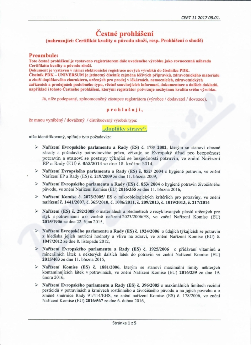 5 strany čestného prohlášení: strana 1, strana 2, strana 3, strana 4, strana 5,