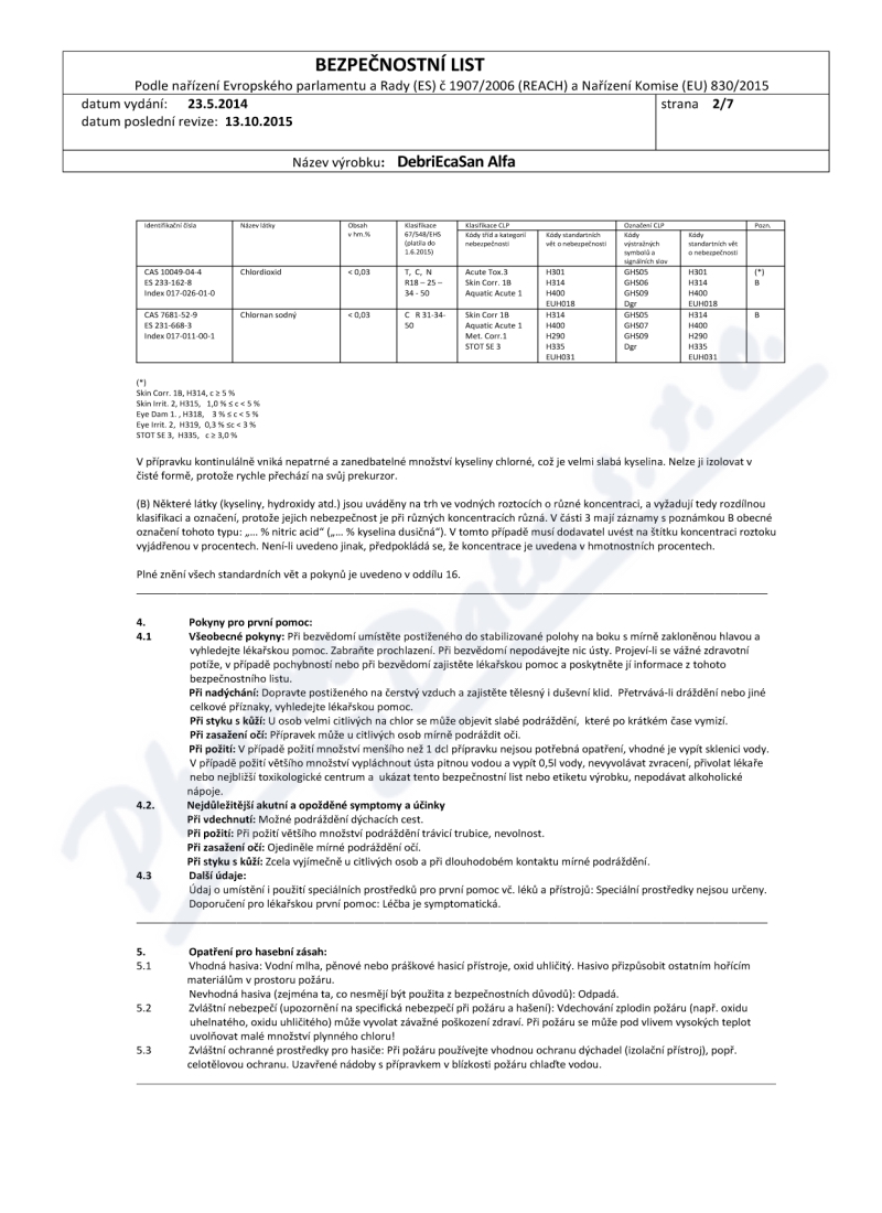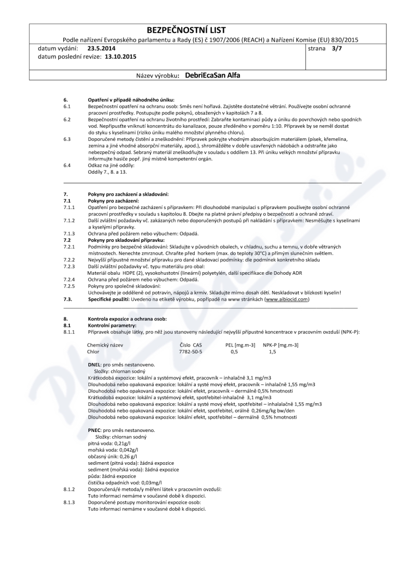 7 strany bezpečnostních listů: strana 1, strana 2, strana 3, strana 4, strana 5, strana 6, strana 7,