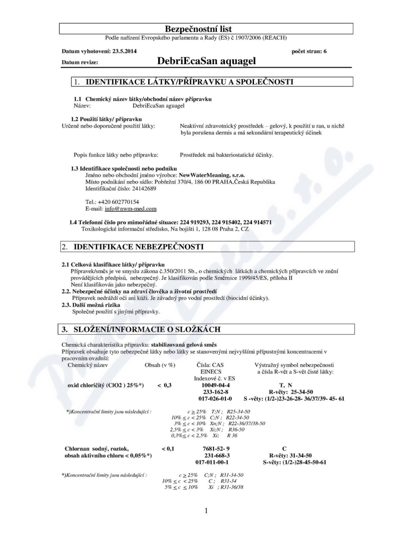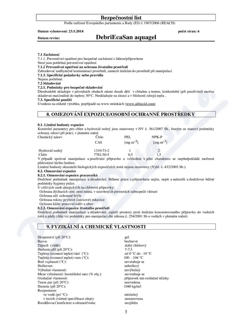 6 strany bezpečnostních listů: strana 1, strana 2, strana 3, strana 4, strana 5, strana 6,