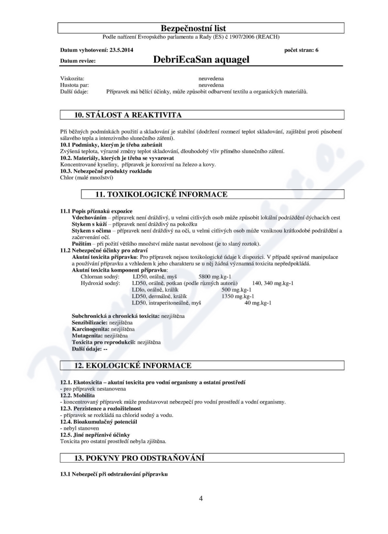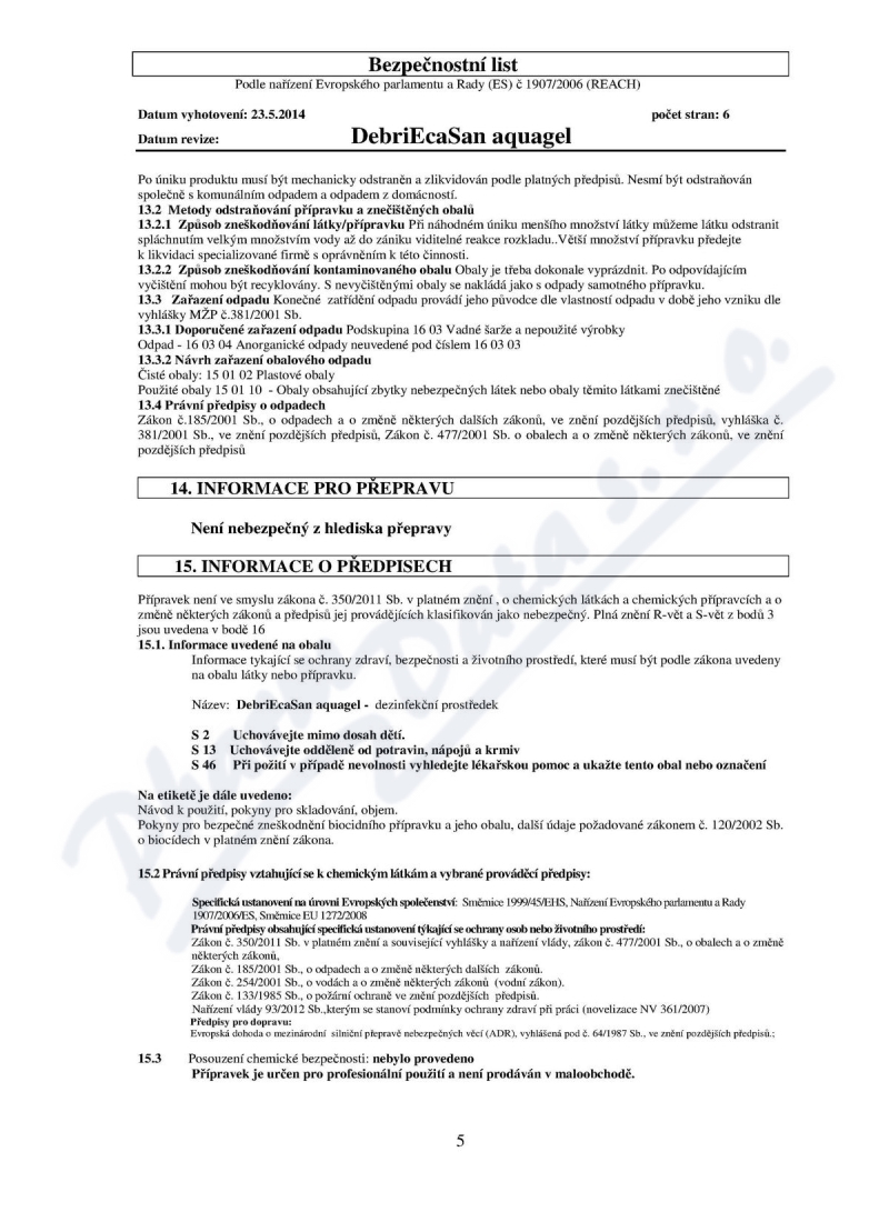 6 strany bezpečnostních listů: strana 1, strana 2, strana 3, strana 4, strana 5, strana 6,