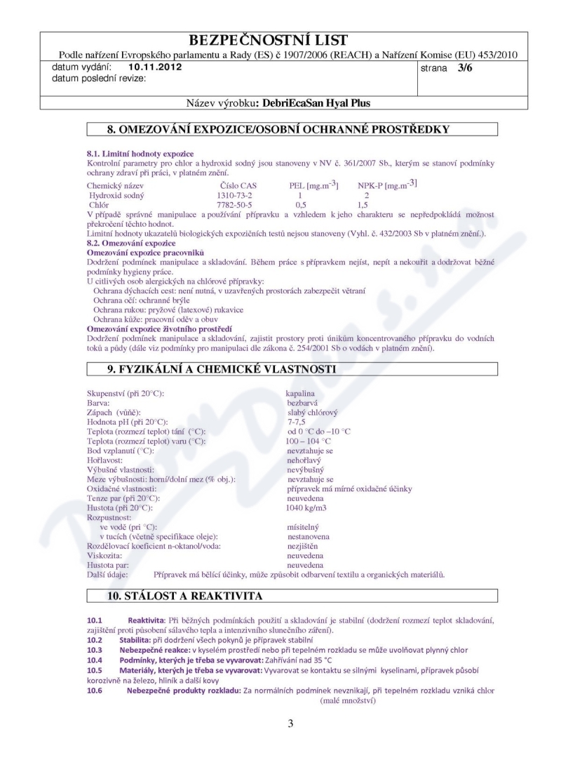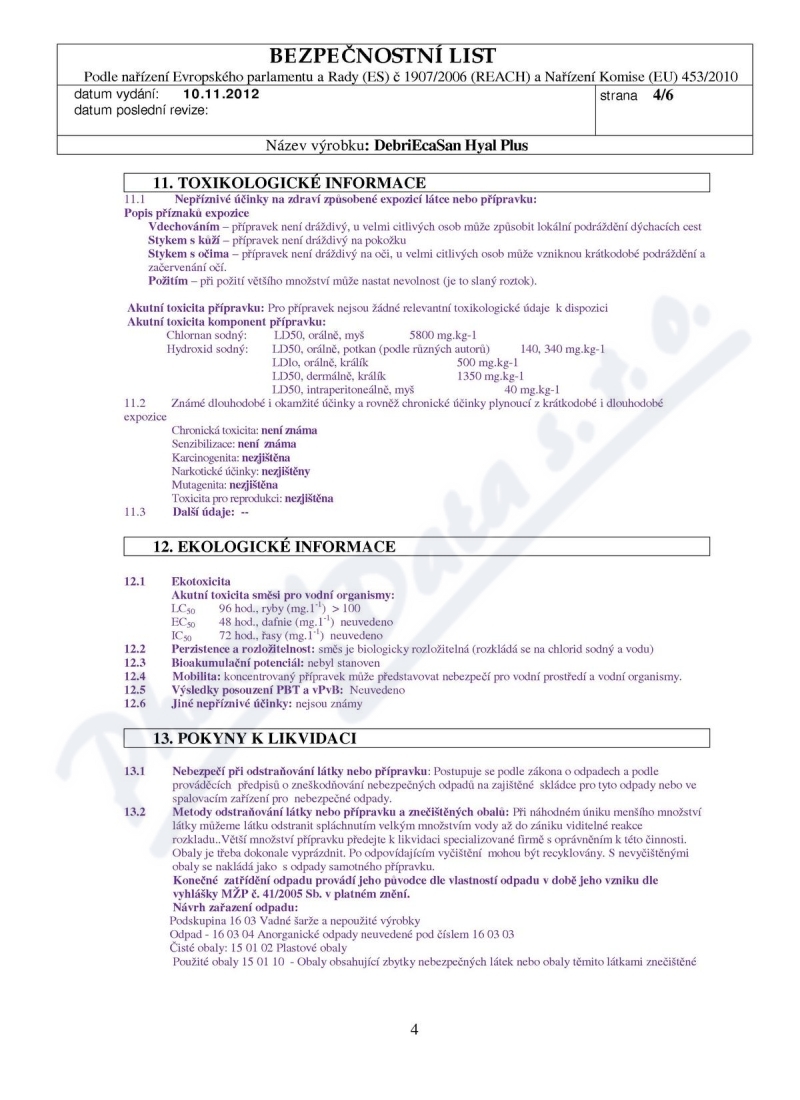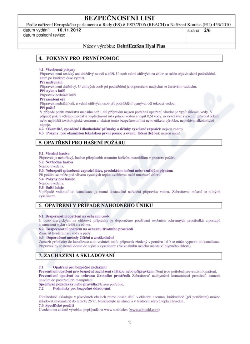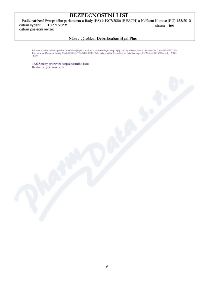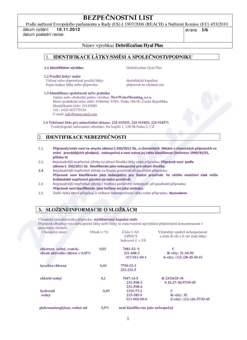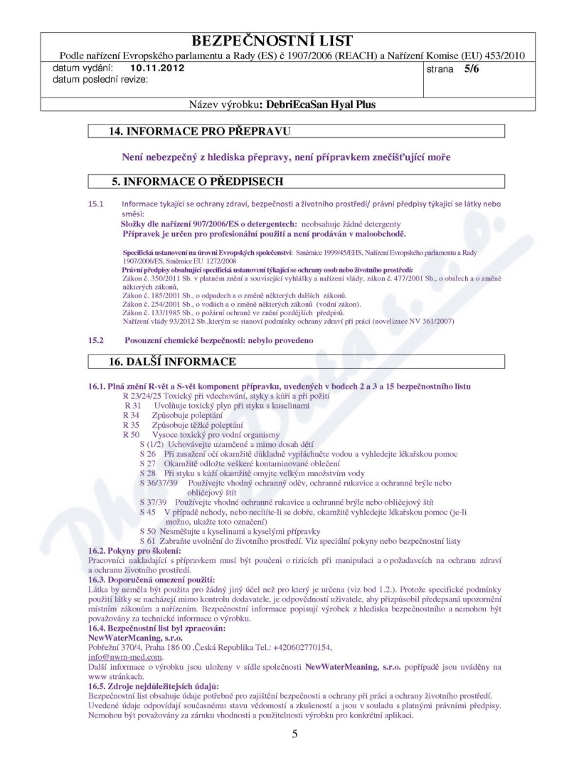 6 strany bezpečnostních listů: strana 1, strana 2, strana 3, strana 4, strana 5, strana 6,