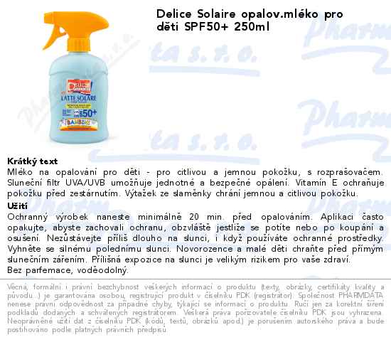 Delice Solaire opalov.mléko pro děti SPF50+ 250ml