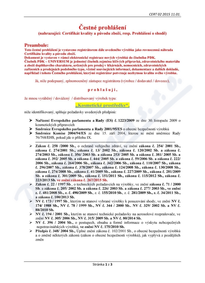 3 strany čestného prohlášení: strana 1, strana 2, strana 3,
