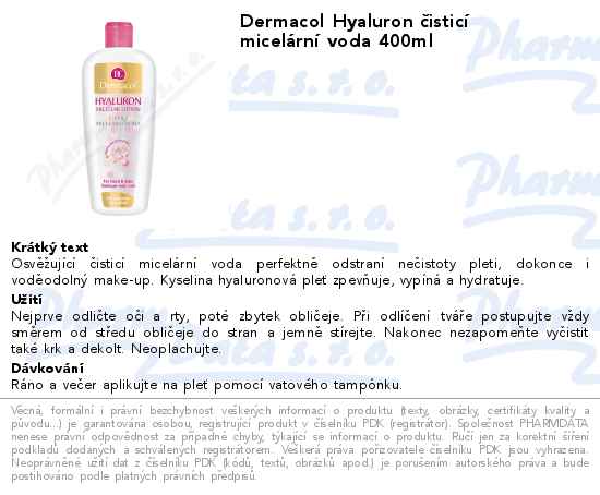 Dermacol Hyaluron čisticí micelární voda 400ml