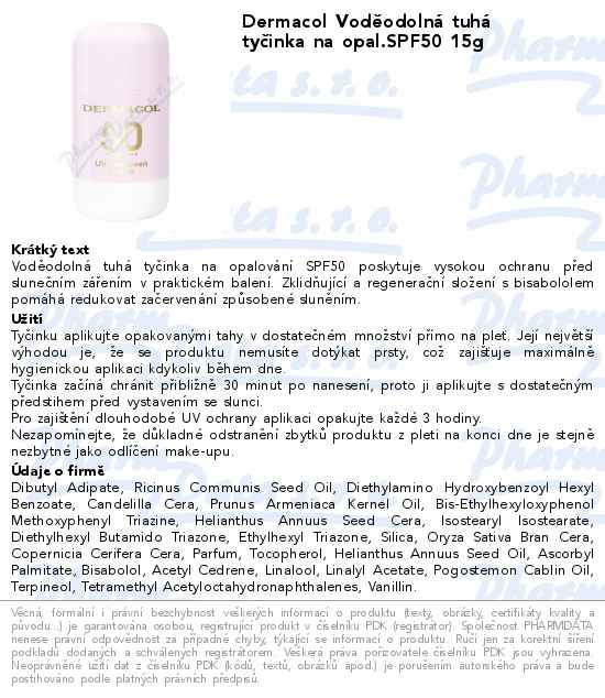 Dermacol Voděodolná tuhá tyčinka na opal.SPF50 15g