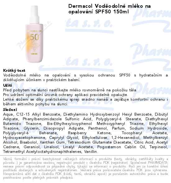 Dermacol Voděodolné mléko na opalování SPF50 150ml