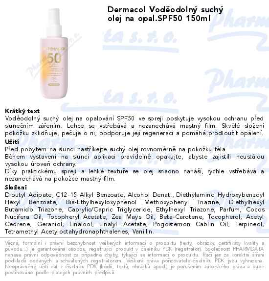 Dermacol Voděodolný suchý olej na opal.SPF50 150ml