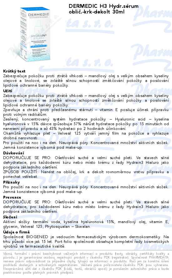 DERMEDIC H3 Hydr.sérum oblič.-krk-dekolt 30ml