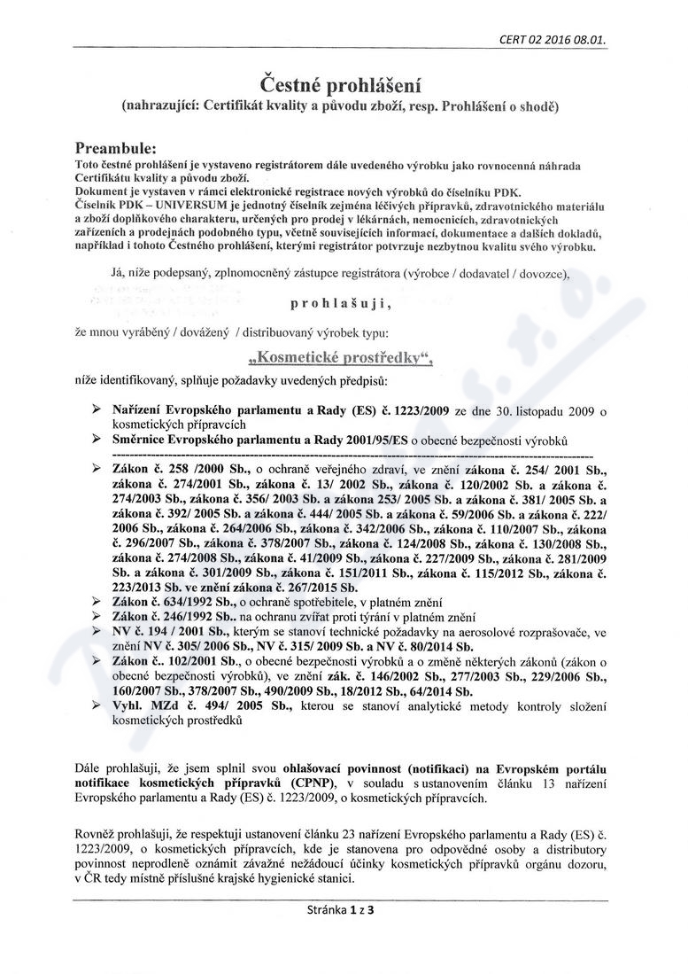 3 strany čestného prohlášení: strana 1, strana 2, strana 3,