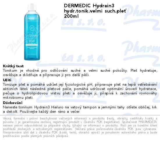 DERMEDIC Hydrain3 hydr.tonik.velmi such.pleť 200ml