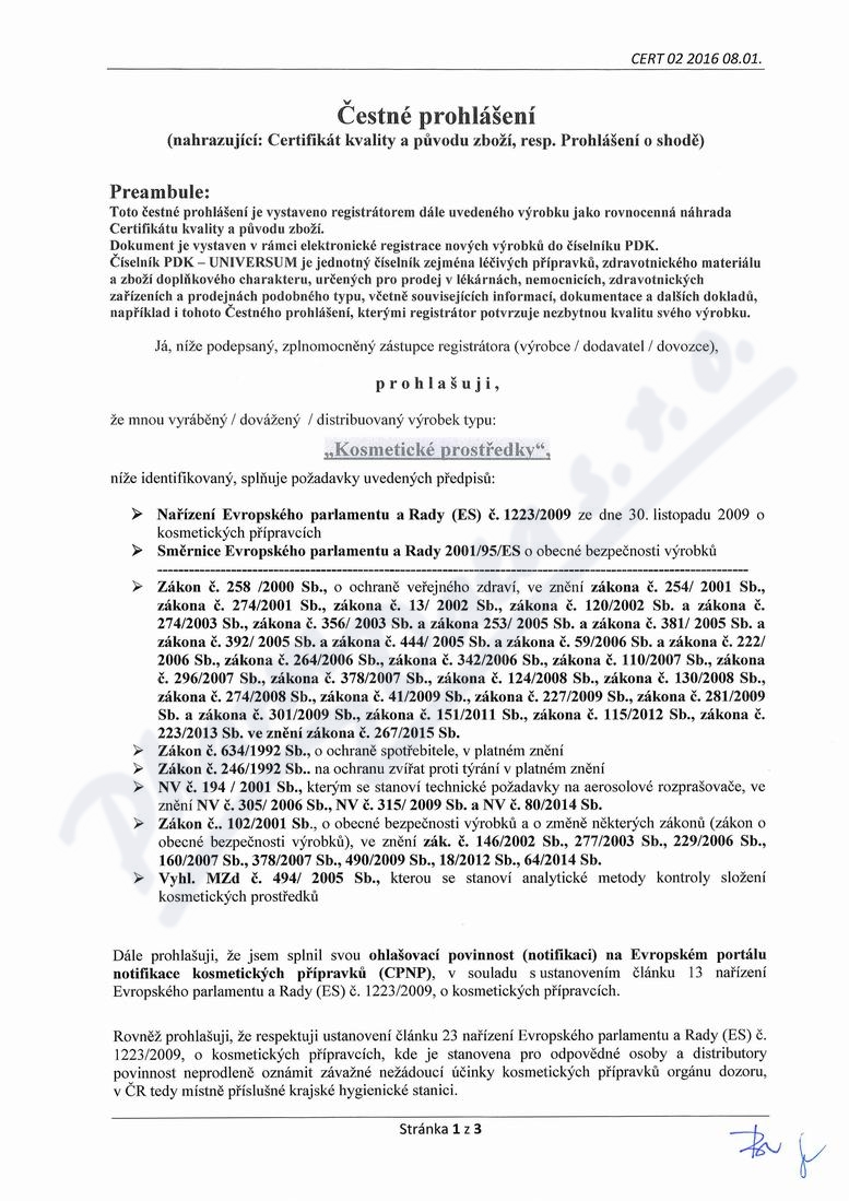 3 strany čestného prohlášení: strana 1, strana 2, strana 3,