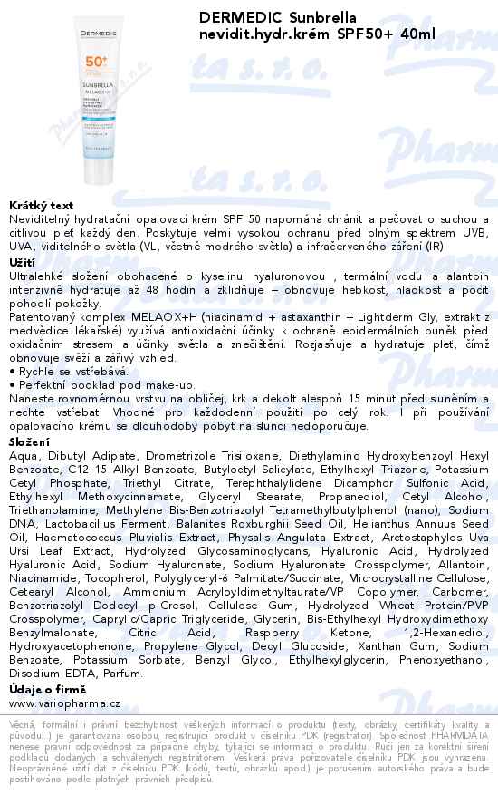 DERMEDIC Sunbrella nevidit.hydr.krém SPF50+ 40ml