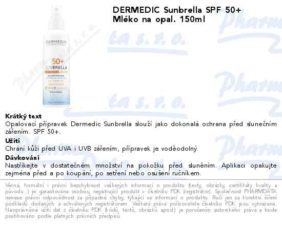DERMEDIC Sunbrella SPF 50+ Mléko na opal. 150ml