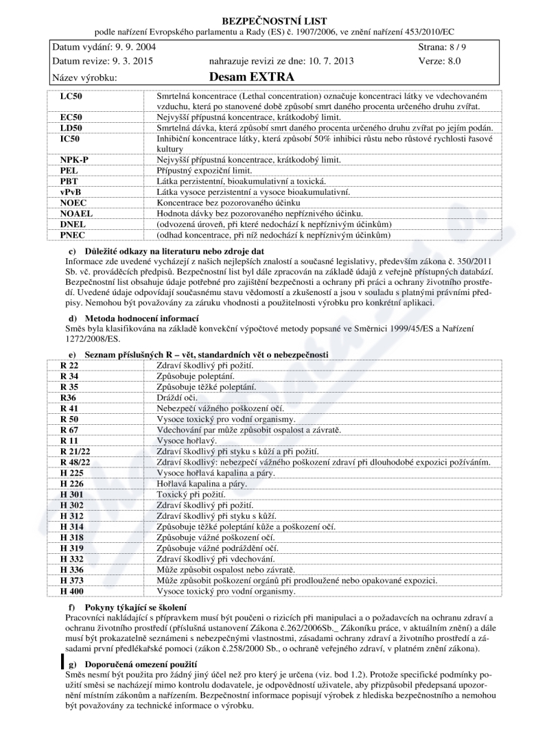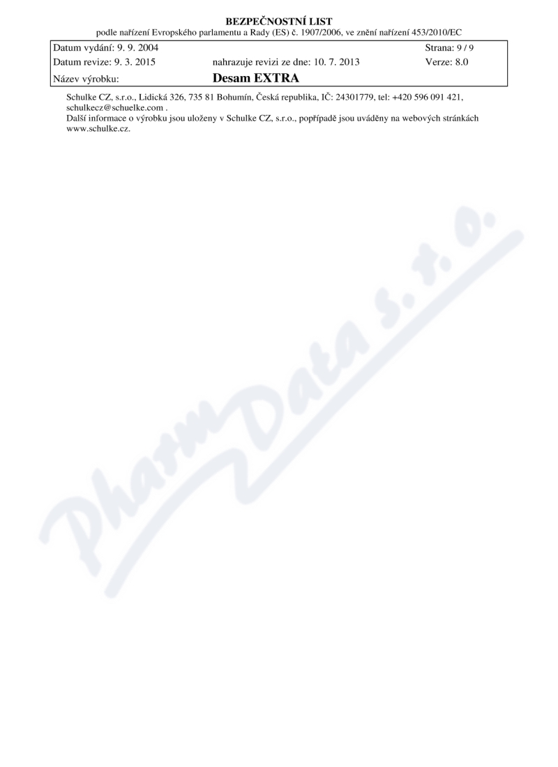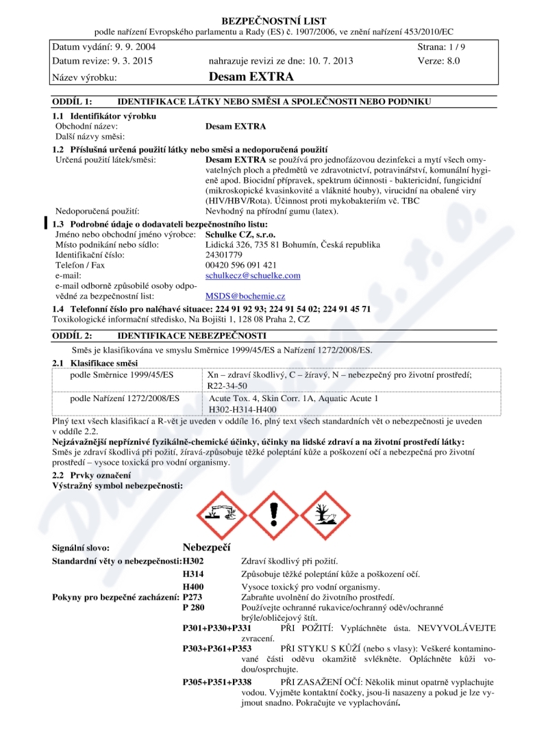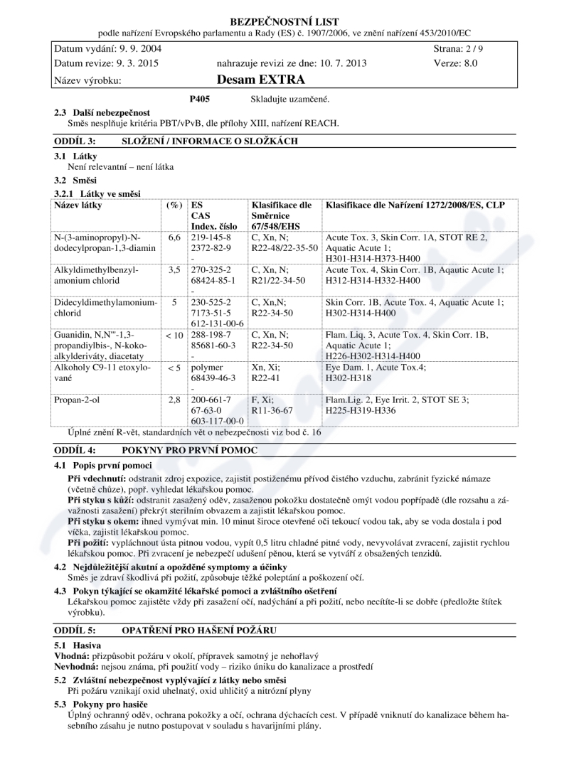9 strany bezpečnostních listů: strana 1, strana 2, strana 3, strana 4, strana 5, strana 6, strana 7, strana 8, strana 9,