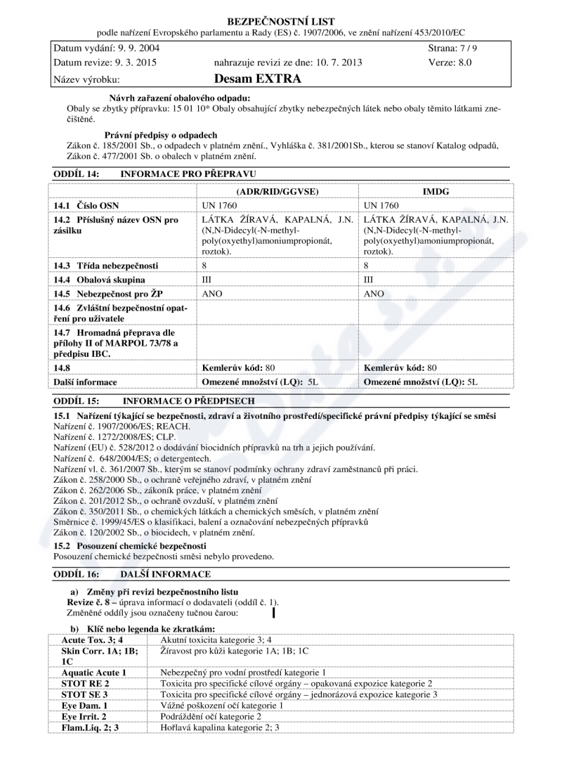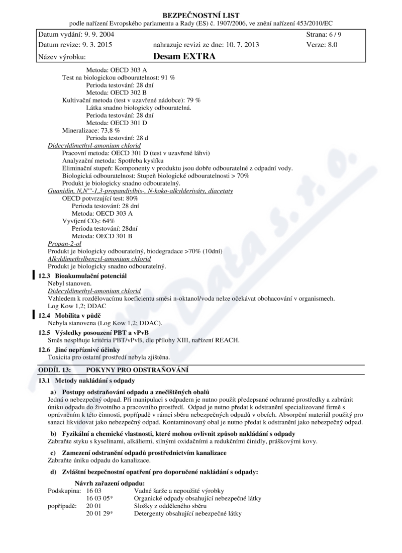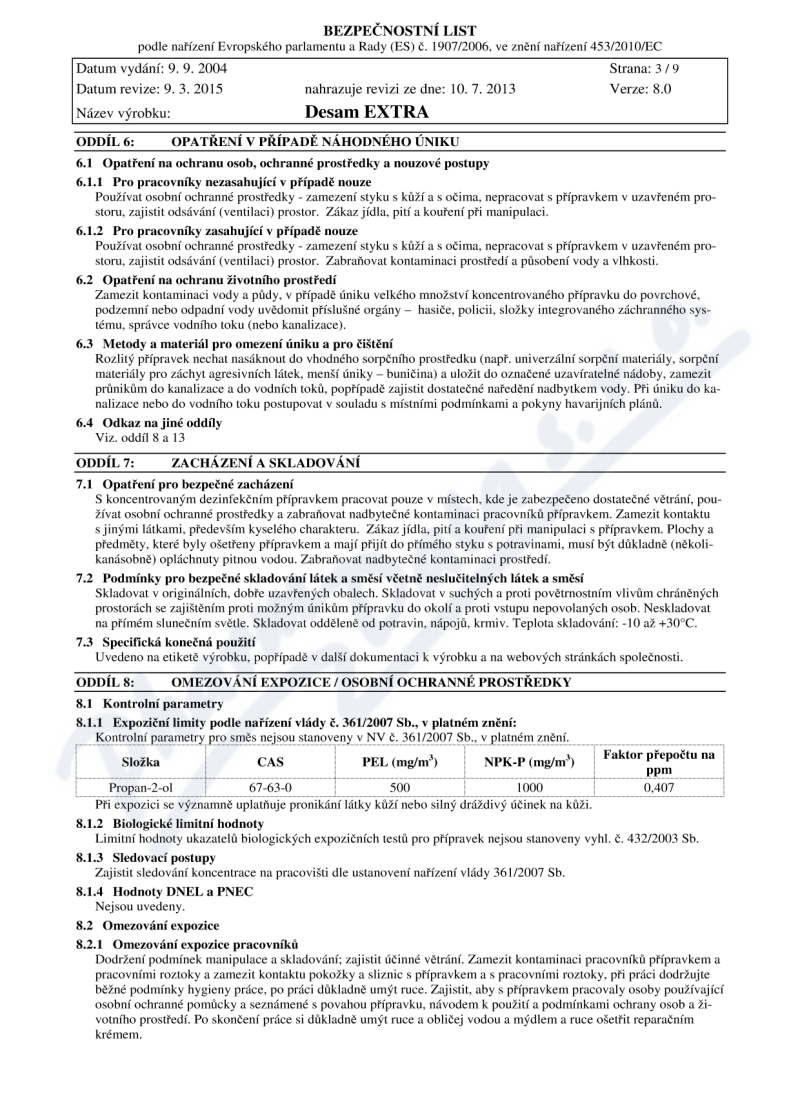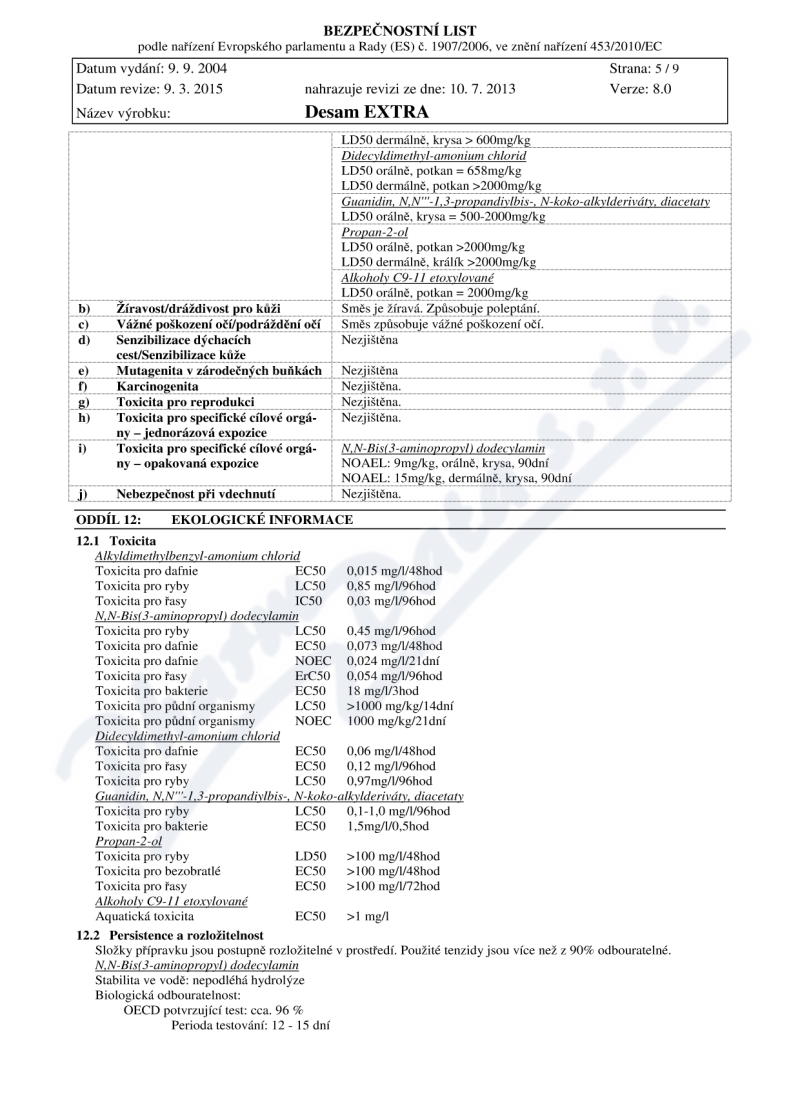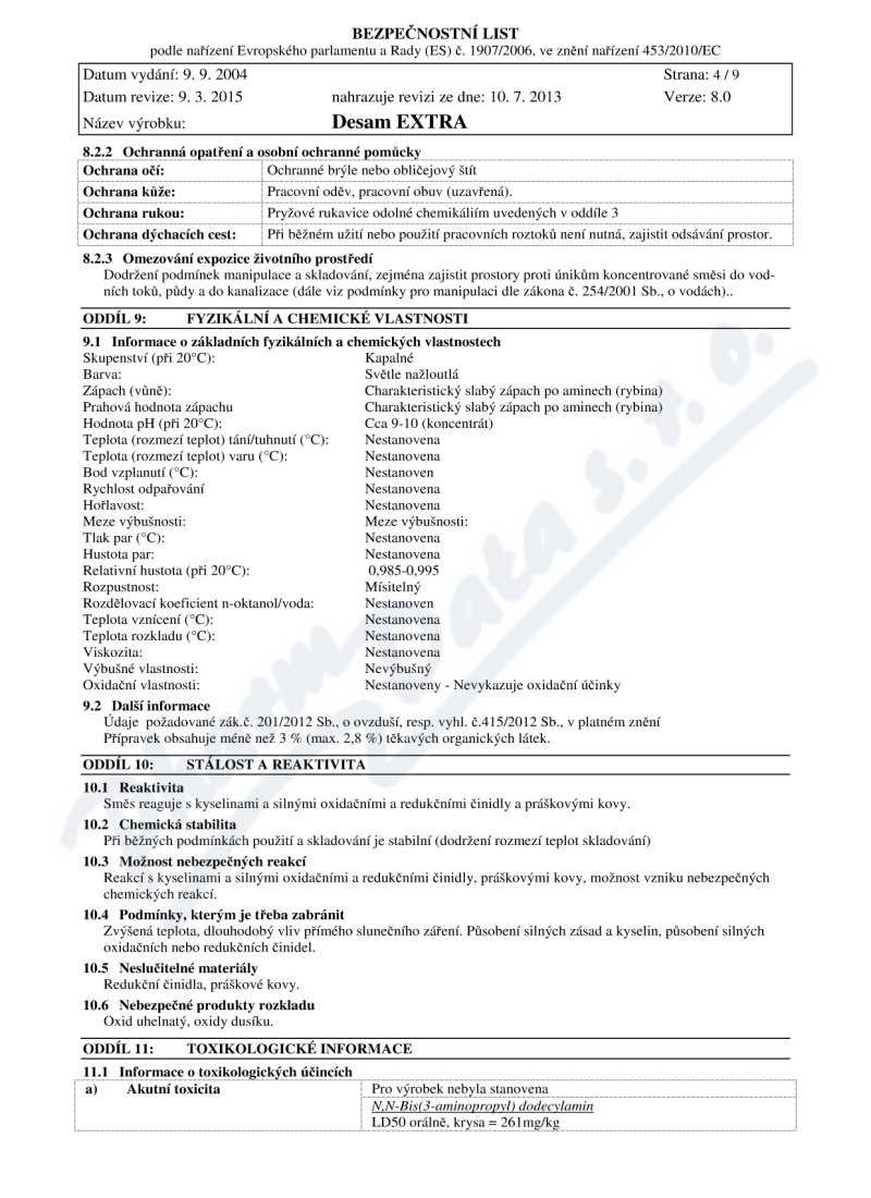 9 strany bezpečnostních listů: strana 1, strana 2, strana 3, strana 4, strana 5, strana 6, strana 7, strana 8, strana 9,