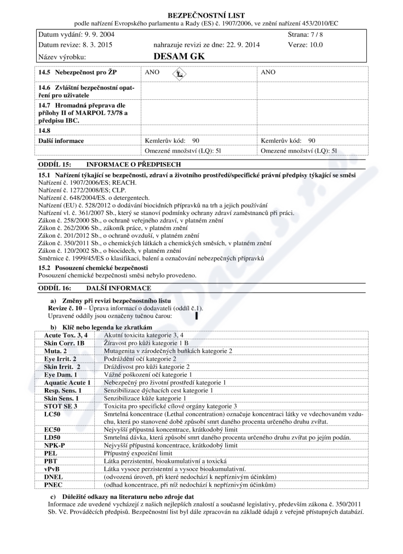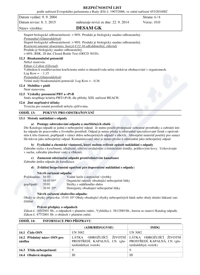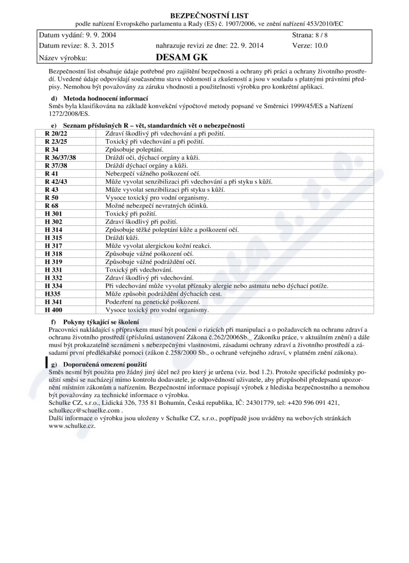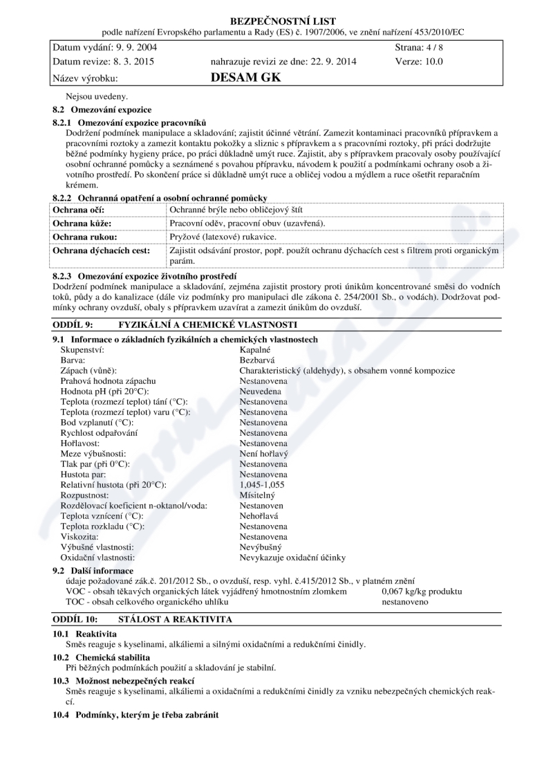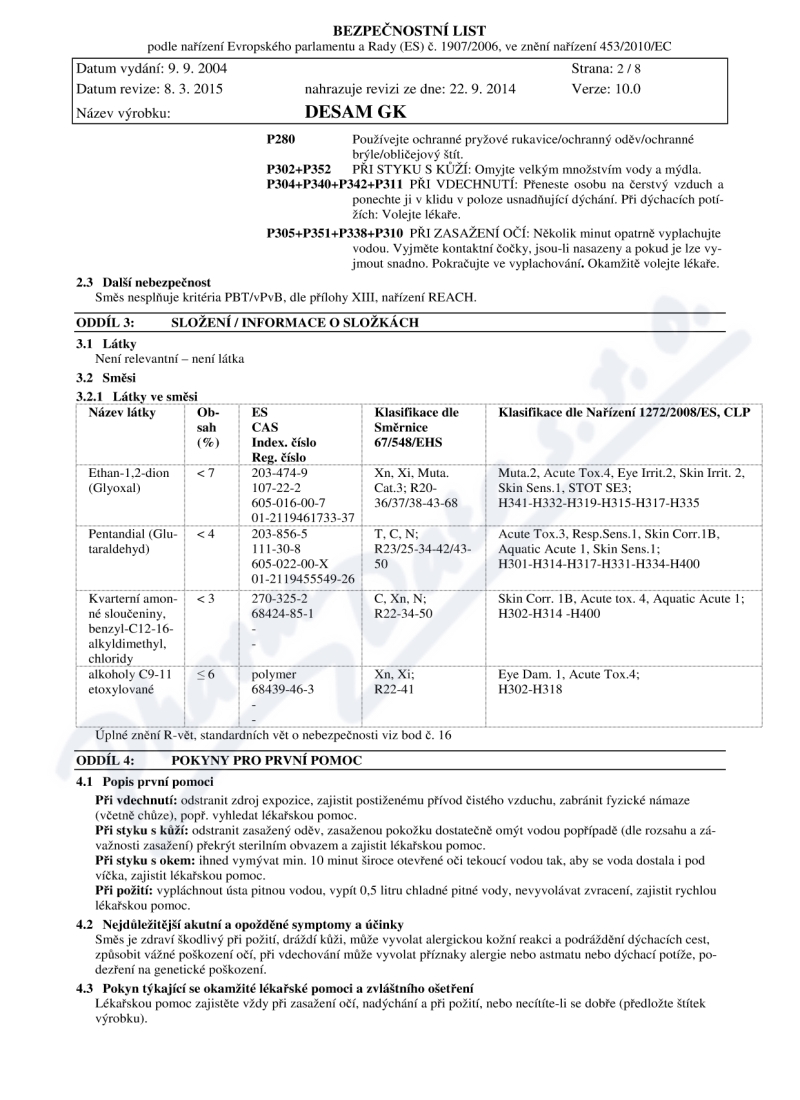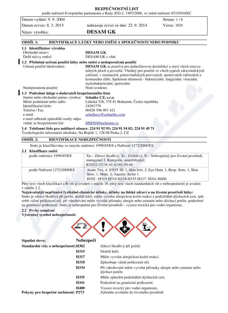 8 strany bezpečnostních listů: strana 1, strana 2, strana 3, strana 4, strana 5, strana 6, strana 7, strana 8,