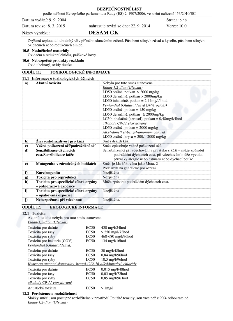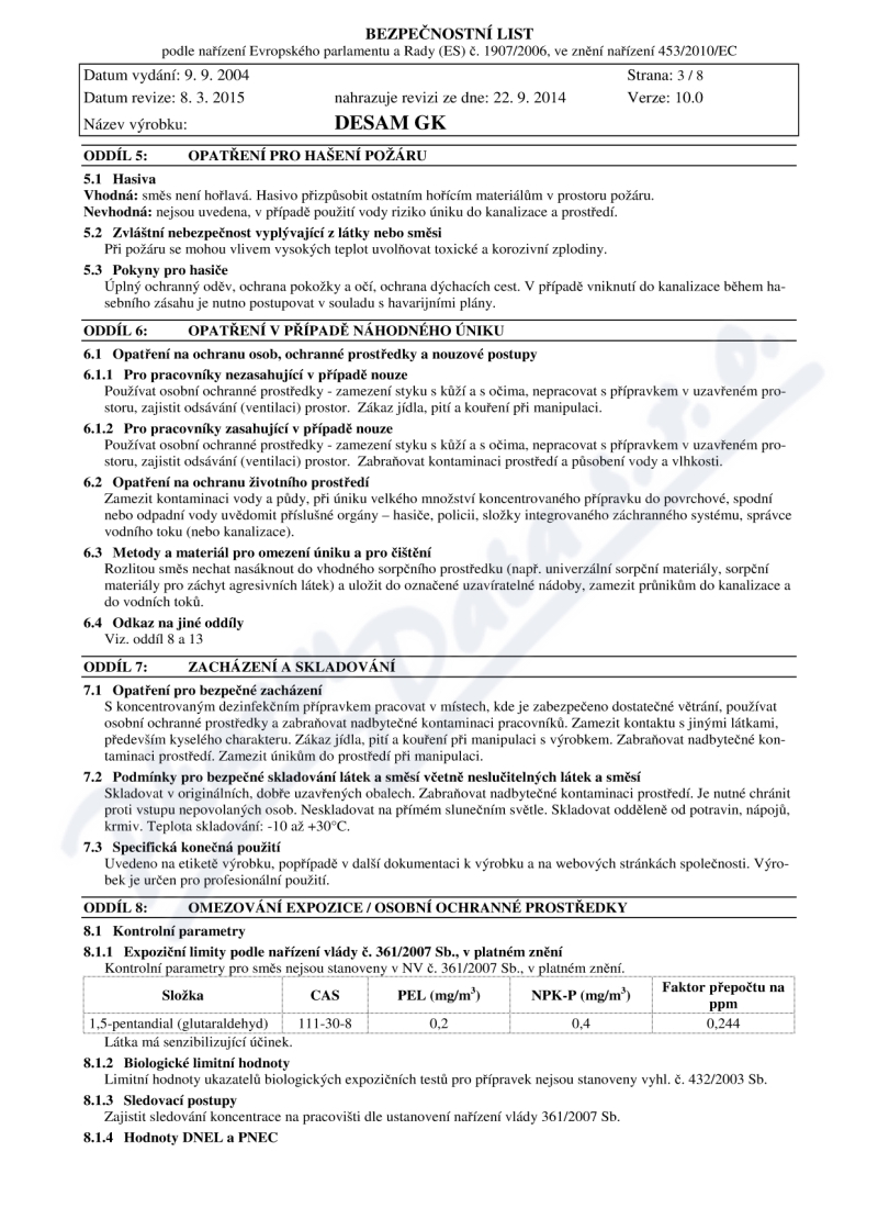8 strany bezpečnostních listů: strana 1, strana 2, strana 3, strana 4, strana 5, strana 6, strana 7, strana 8,
