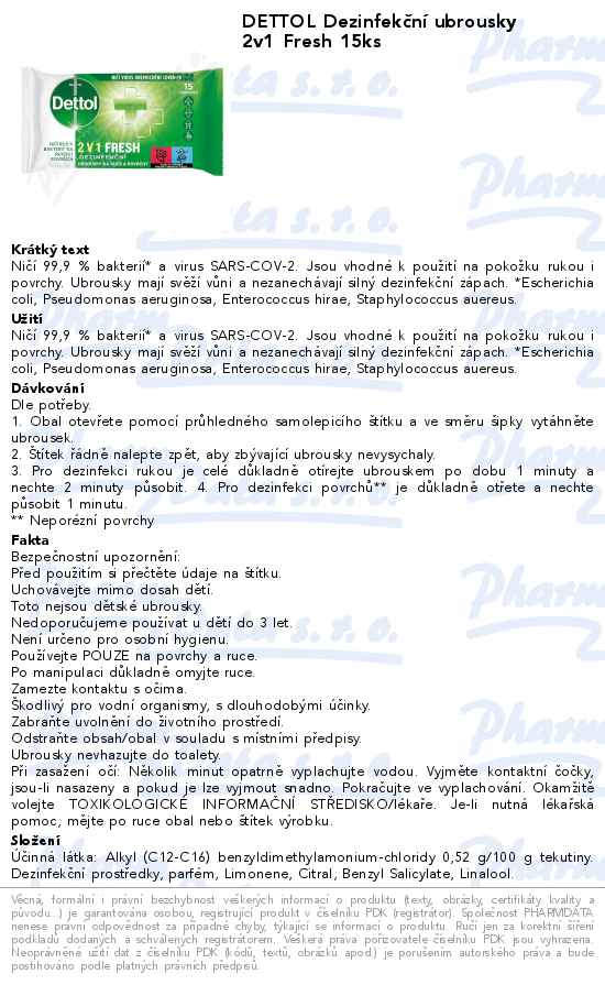 DETTOL Dezinfekční ubrousky 2v1 Fresh 15ks