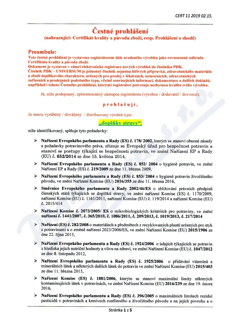 5 strany čestného prohlášení: strana 1, strana 2, strana 3, strana 4, strana 5,