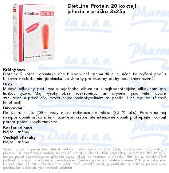 DietLine Protein 20 koktejl jahoda v prášku 3x25g