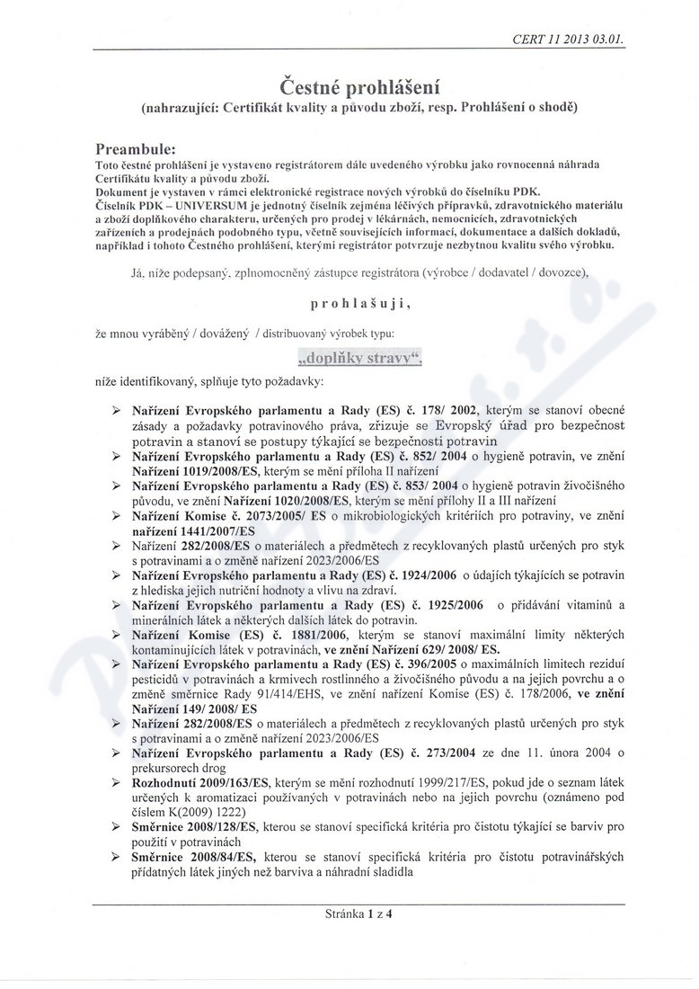 4 strany čestného prohlášení: strana 1, strana 2, strana 3, strana 4,