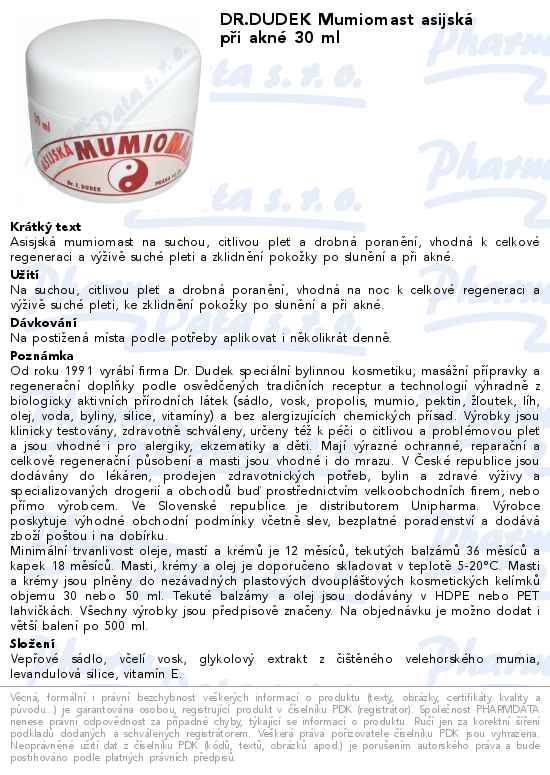 DR.DUDEK Mumiomast asijská při akné 30 ml