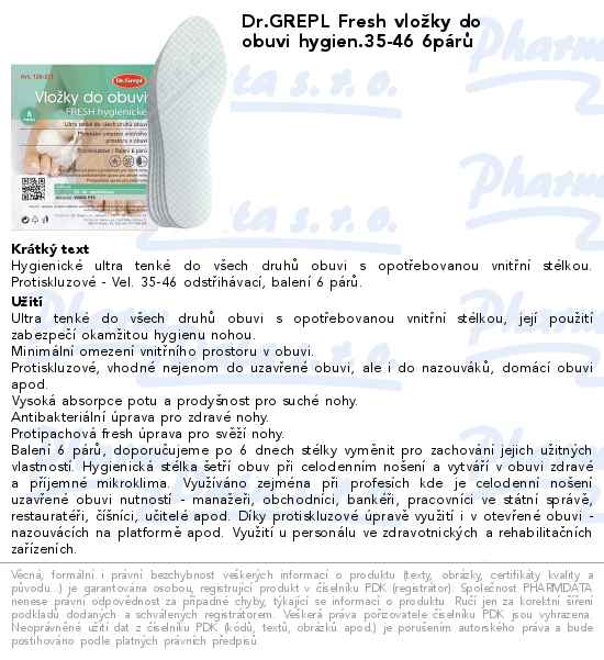 Dr.GREPL Fresh vložky do obuvi hygien.35-46 6párů