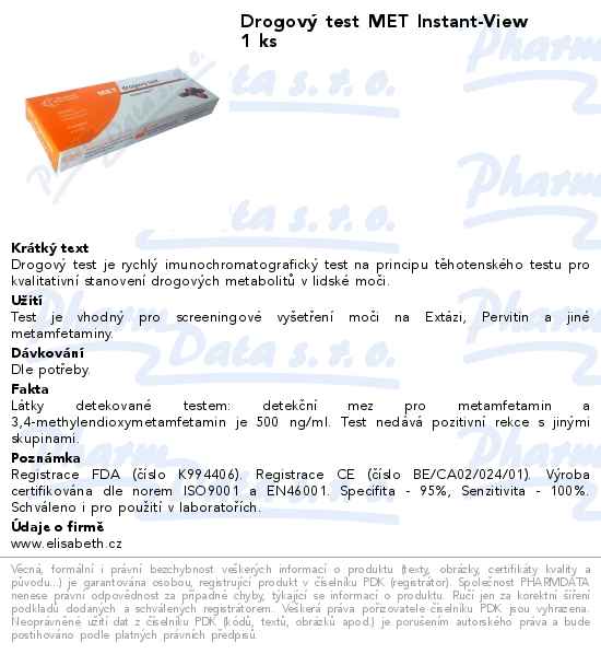Drogový test MET Instant-View 1 ks