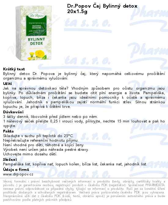 Dr.Popov Čaj Bylinný detox 20x1.5g